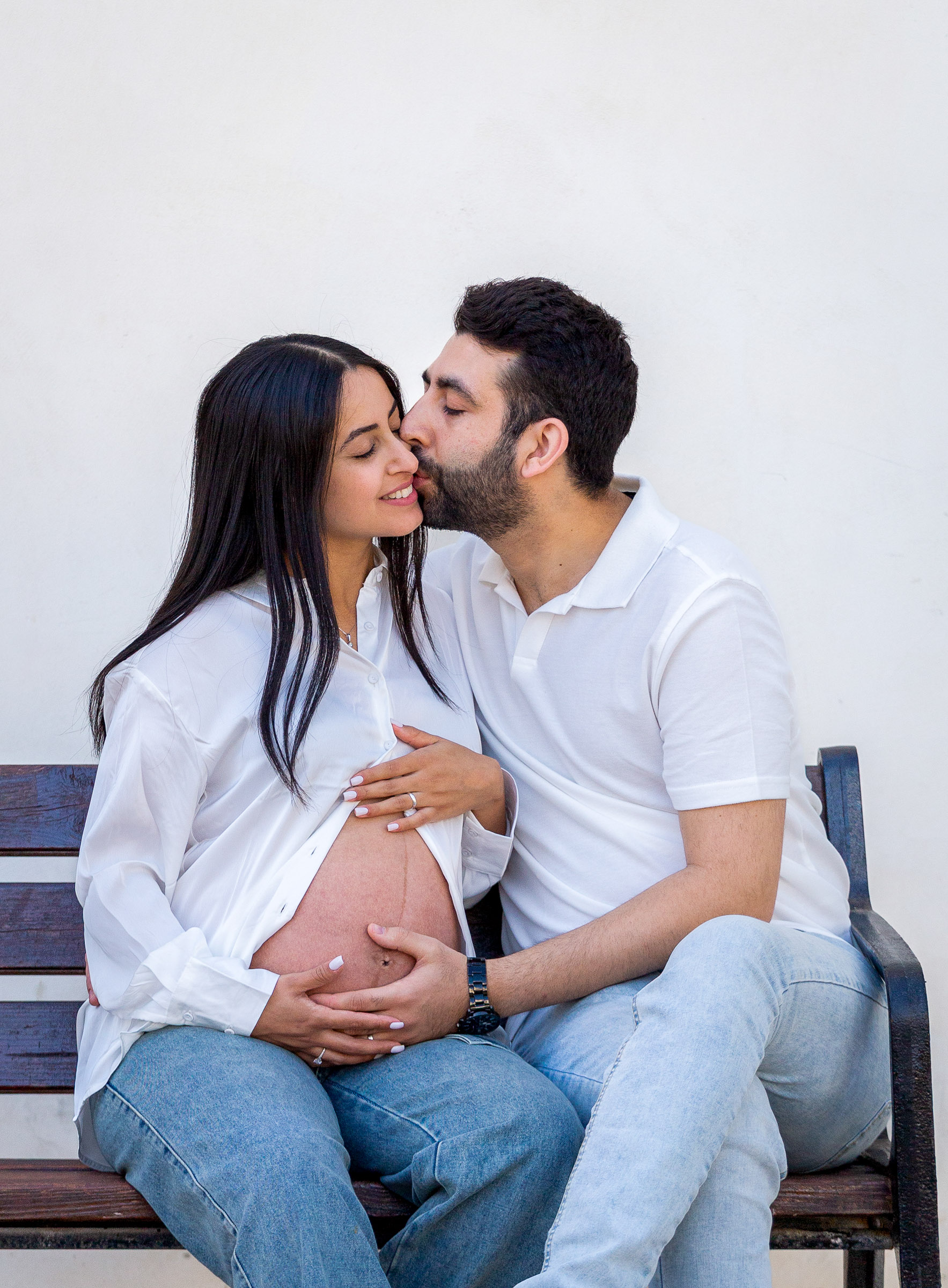צילום היריון זוגי – נשיקה על הספסל.jpg