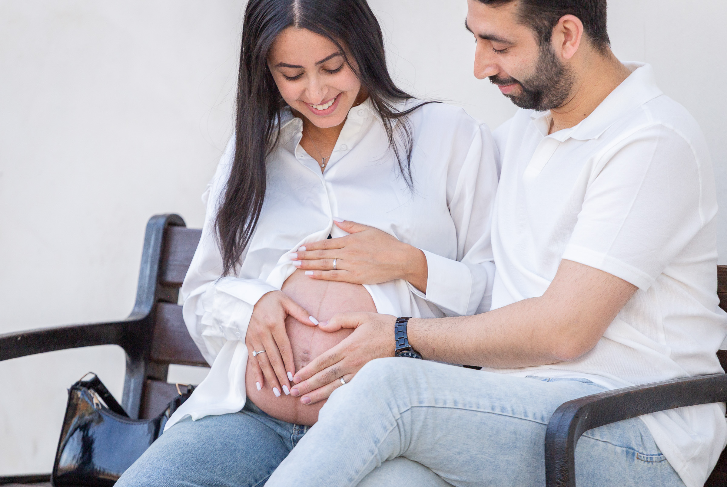 צילום היריון זוגי – ידיים על הבטן על ספסל.jpg