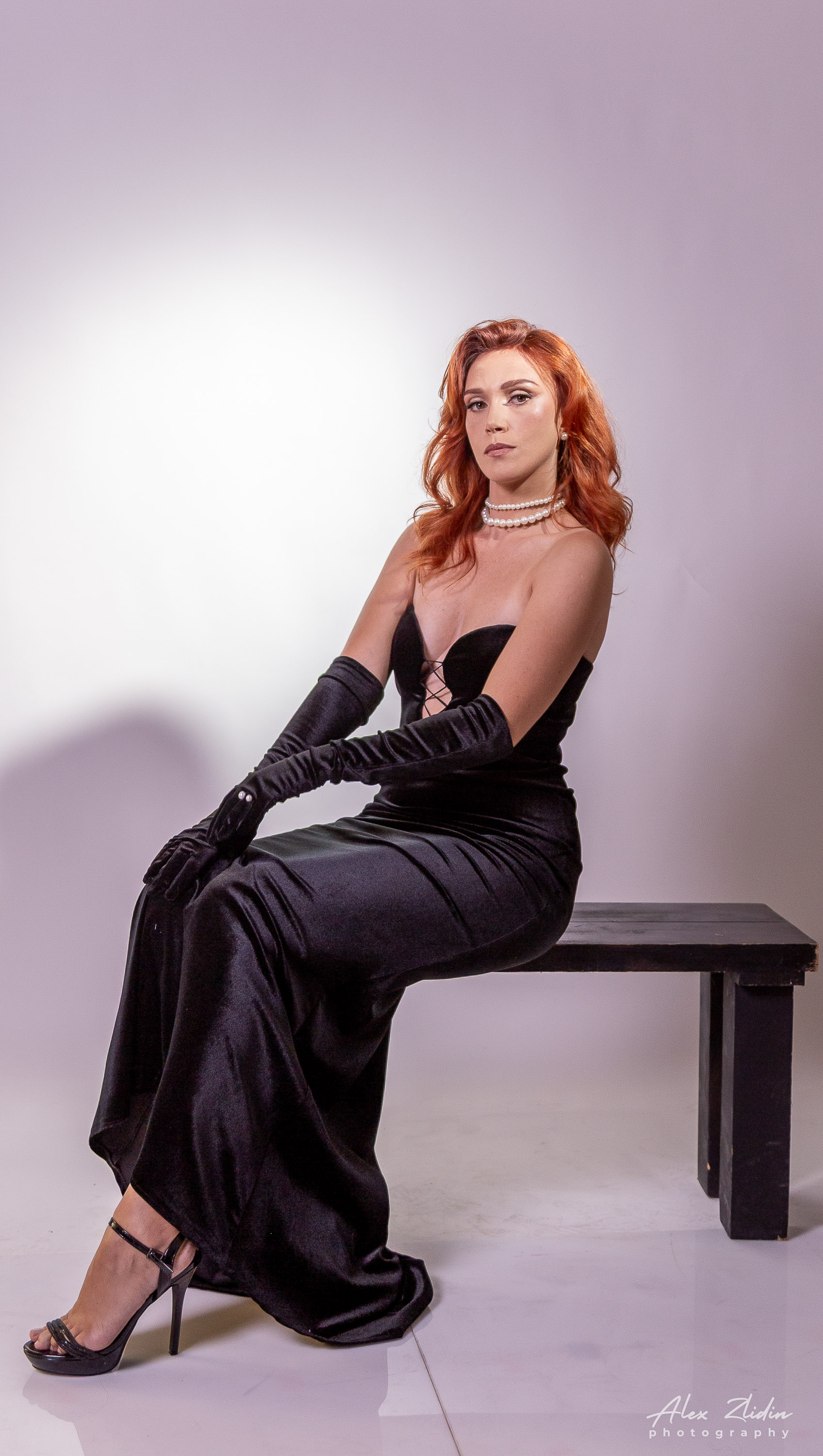 דיוקן אלגנטי בשמלה שחורה וכפפות פנינים.jpg