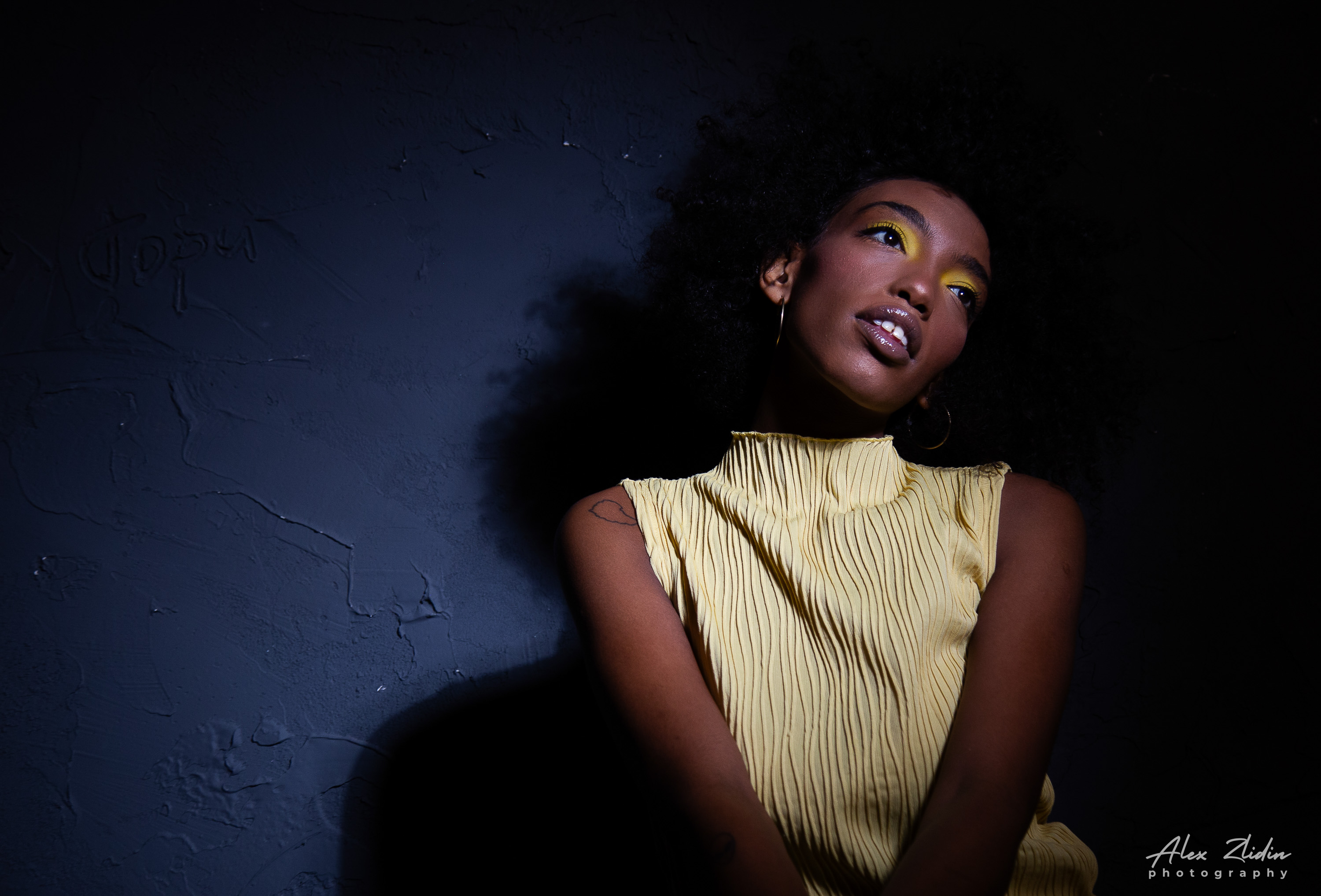 דיוקן דרמטי עם חולצה צהובה על קיר מרקם.jpg